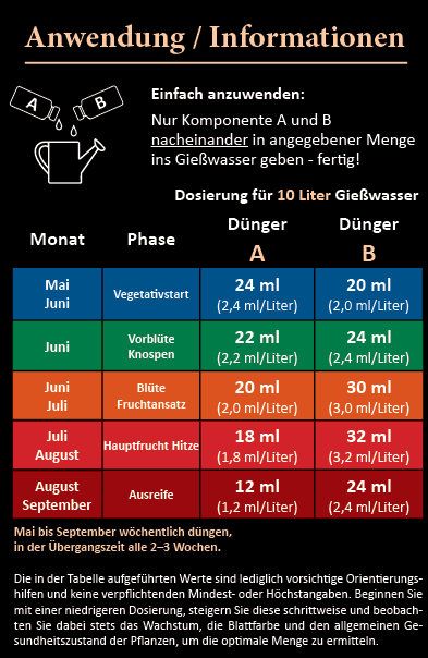 - Hoher Kaliumanteil für Aroma, Schärfe und Fruchtqualität